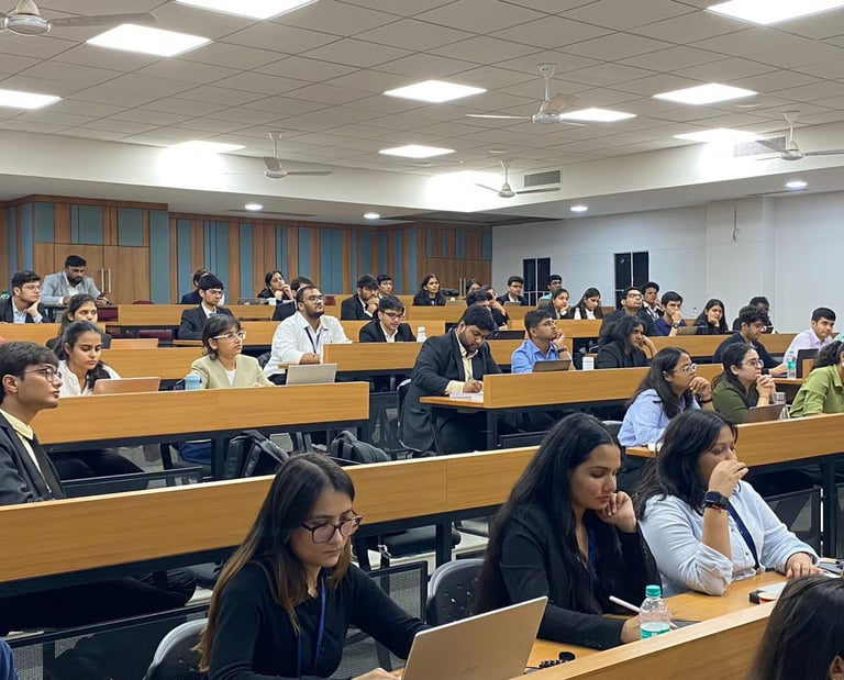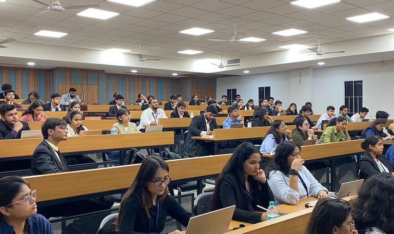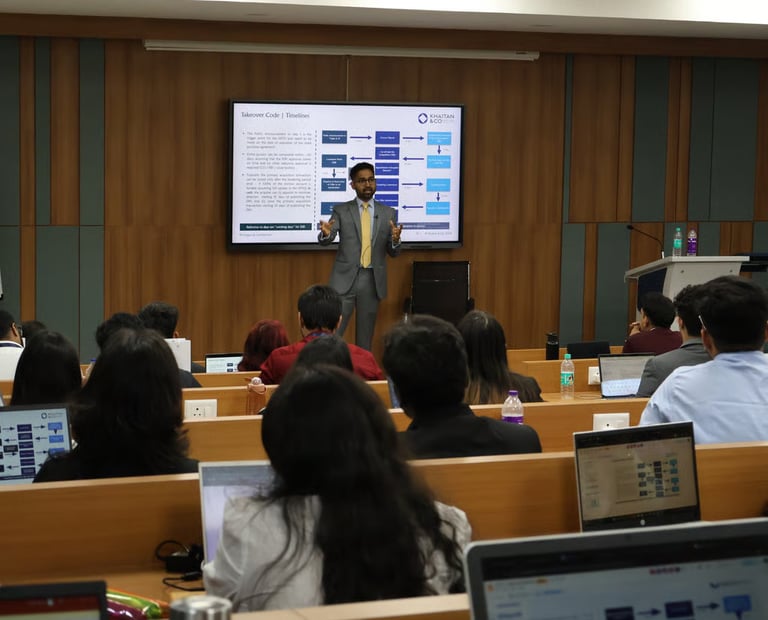 The last edition of the course was held in partnership with Khaitan & Co, from December 2024 to January 2025. Participants were provided with more than 60 hours of intense training in capital markets regulations and securities law by various Partners from Khaitan & Co, regulatory experts from IFSCA and Ex-SEBI, academicians from leading universities, investment bankers, and financial auditors. The offline leg of the course was conducted at the GNLU campus, Gandhinagar from 30th January to 2nd February, 2025. It comprised over 25 hours of teaching. More than 80 students from 32 universities participated, selected from 450+ applications. Further, practical exposure was given to the participants through field visits at GIFT IFSCA and India International Exchange.