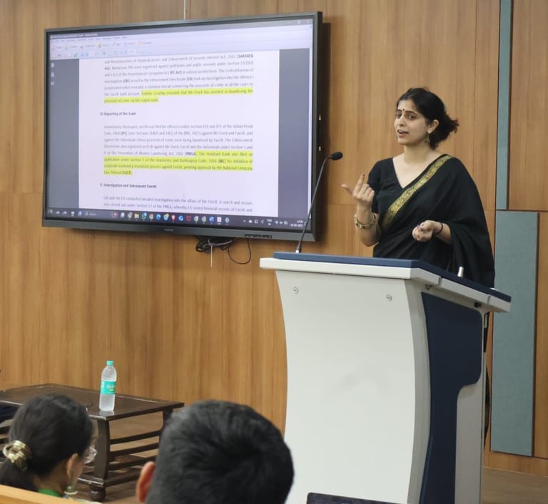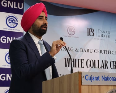 After an insightful Day 1 that laid the groundwork with discussions on the ambit of white-collar crimes and the statutory framework under the BNS, BNSS, and BSA, Day 2 of the GNLU - Panag & Babu Certificate Course on White Collar Crimes, 2025, delved into the nuanced complexities of statutes, regulatory mechanisms, and practice-oriented challenges in this domain. The sessions were enriched by the expertise of Mr. J.S. Bhullar and Ms. Shruti Raina, Partners at Panag & Babu, who brought valuable practitioner perspectives to the table.