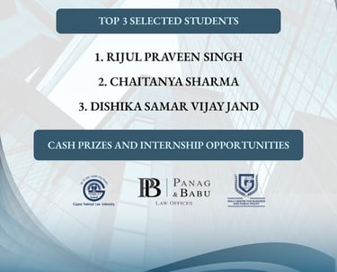 The Law Offices of Panag & Babu announced that it will provide scholarships and internships to the top five students, with the top three also receiving a cash prize of ₹25,000 each. To ensure accessibility, GNLU had already granted five need-cum-merit-based fee waivers to participants selected via an earlier process of interviews and statements of purpose.