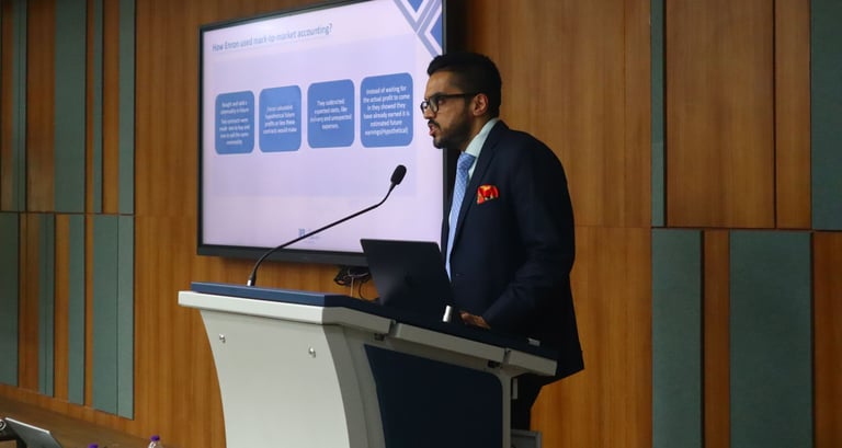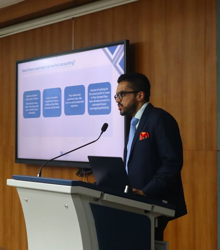 𝐒𝐞𝐬𝐬𝐢𝐨𝐧 2: White Collar Crimes in Practice – Mr. Satya Ranjan Mishra and Mr. Guneet Gudh led case studies on landmark scams including Satyam, Enron, Harshad Mehta, and the PNB–Gitanjali fraud, illustrating regulatory gaps, auditing failures, and the reforms these crises brought about.