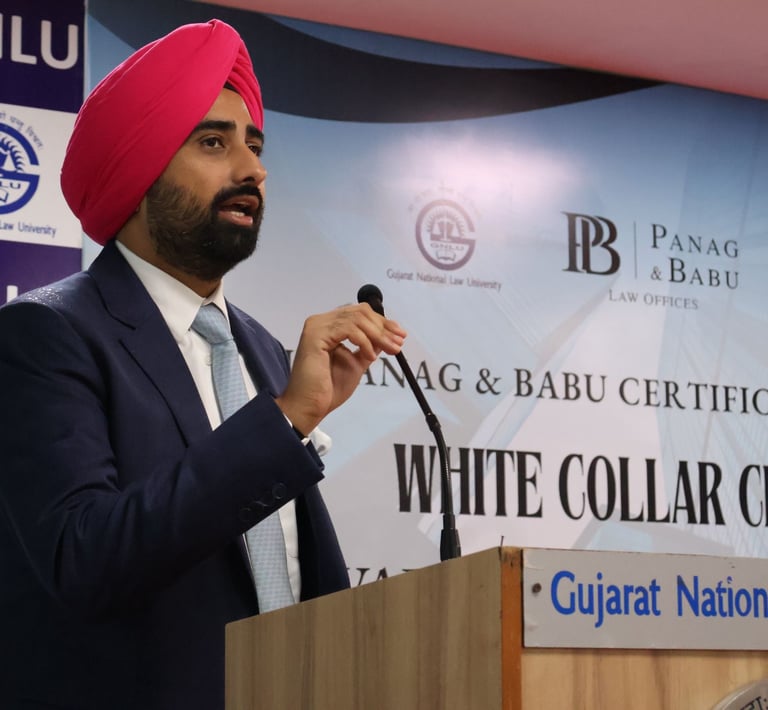 We are delighted to announce the launch of the first edition of the GNLU – Panag & Babu Certificate Course on White Collar Crimes (2025–26). Scheduled from 28th to 30th September 2025 in physical mode at Gujarat National Law University, Gandhinagar, this course is designed to provide participants with a strong foundational understanding of the White Collar Crimes practice. Over the span of 18+ hours, leading lawyers from Panag & Babu and academicians from GNLU will guide participants through the entire life cycle of white-collar crime cases. With limited seats available, the course offers unique opportunities, including internships with Panag & Babu, scholarships for the top performers, and merit-cum-need based fee waivers from GNLU.