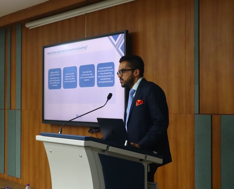 𝐒𝐞𝐬𝐬𝐢𝐨𝐧 2: White Collar Crimes in Practice – Mr. Satya Ranjan Mishra and Mr. Guneet Gudh led case studies on landmark scams including Satyam, Enron, Harshad Mehta, and the PNB–Gitanjali fraud, illustrating regulatory gaps, auditing failures, and the reforms these crises brought about.