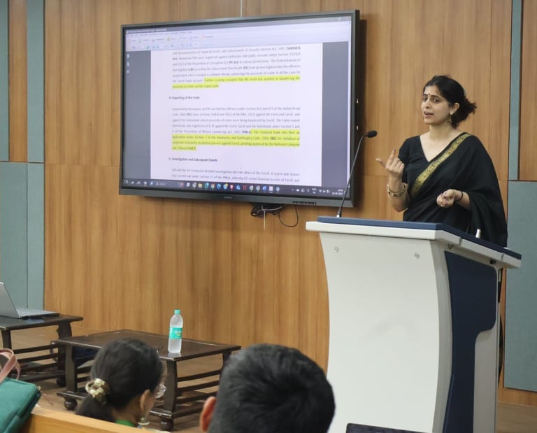 After an insightful Day 1 that laid the groundwork with discussions on the ambit of white-collar crimes and the statutory framework under the BNS, BNSS, and BSA, Day 2 of the GNLU - Panag & Babu Certificate Course on White Collar Crimes, 2025, delved into the nuanced complexities of statutes, regulatory mechanisms, and practice-oriented challenges in this domain. The sessions were enriched by the expertise of Mr. J.S. Bhullar and Ms. Shruti Raina, Partners at Panag & Babu, who brought valuable practitioner perspectives to the table.