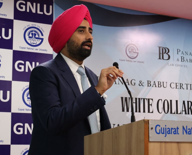 We are delighted to announce the launch of the first edition of the GNLU – Panag & Babu Certificate Course on White Collar Crimes (2025–26). Scheduled from 28th to 30th September 2025 in physical mode at Gujarat National Law University, Gandhinagar, this course is designed to provide participants with a strong foundational understanding of the White Collar Crimes practice. Over the span of 18+ hours, leading lawyers from Panag & Babu and academicians from GNLU will guide participants through the entire life cycle of white-collar crime cases. With limited seats available, the course offers unique opportunities, including internships with Panag & Babu, scholarships for the top performers, and merit-cum-need based fee waivers from GNLU.